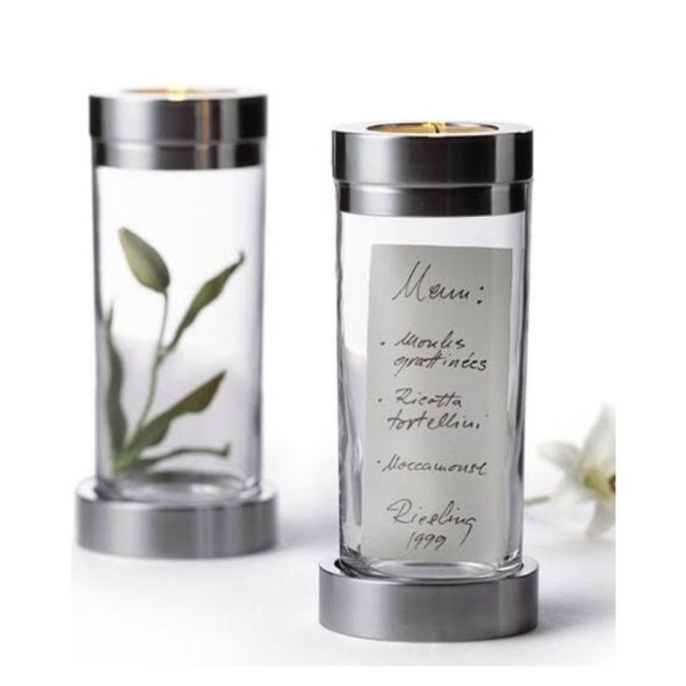 Bain úsáid as do chruthaitheacht féin leis an Gailearaí Candlestick Menu! Is féidir leat a chinneadh an t-ábhar seo candlestick is iad sin féin, ionas go mbeidh sé oiriúnach do giúmar agus decor. Péire bláthanna úra tumtha i uisce, triomaithe ardaigh bachlóga, clocha, sliogáin et cetera. Bain úsáid as do shamhlaíocht agus a chruthú do dhearadh pearsanta!