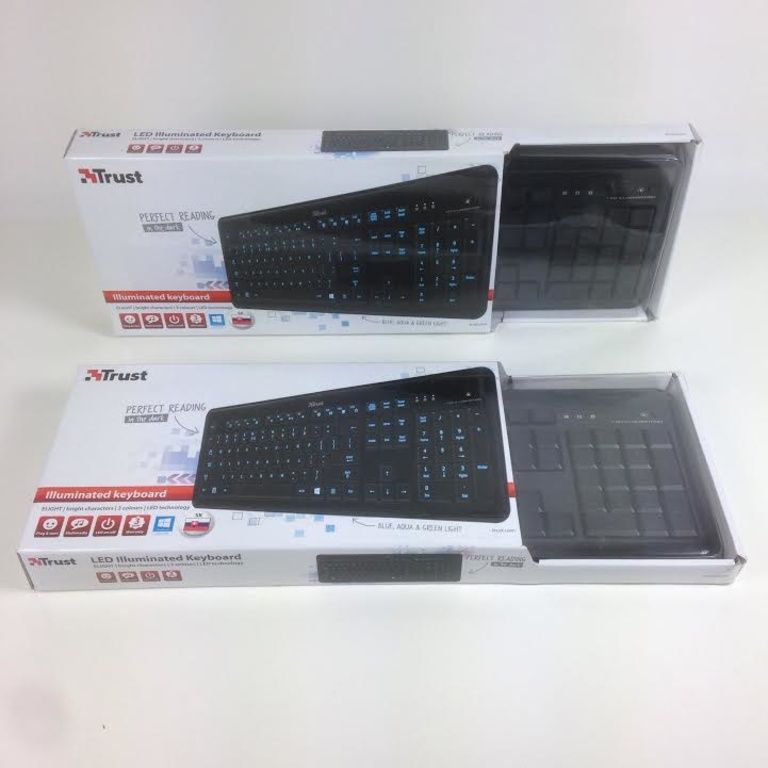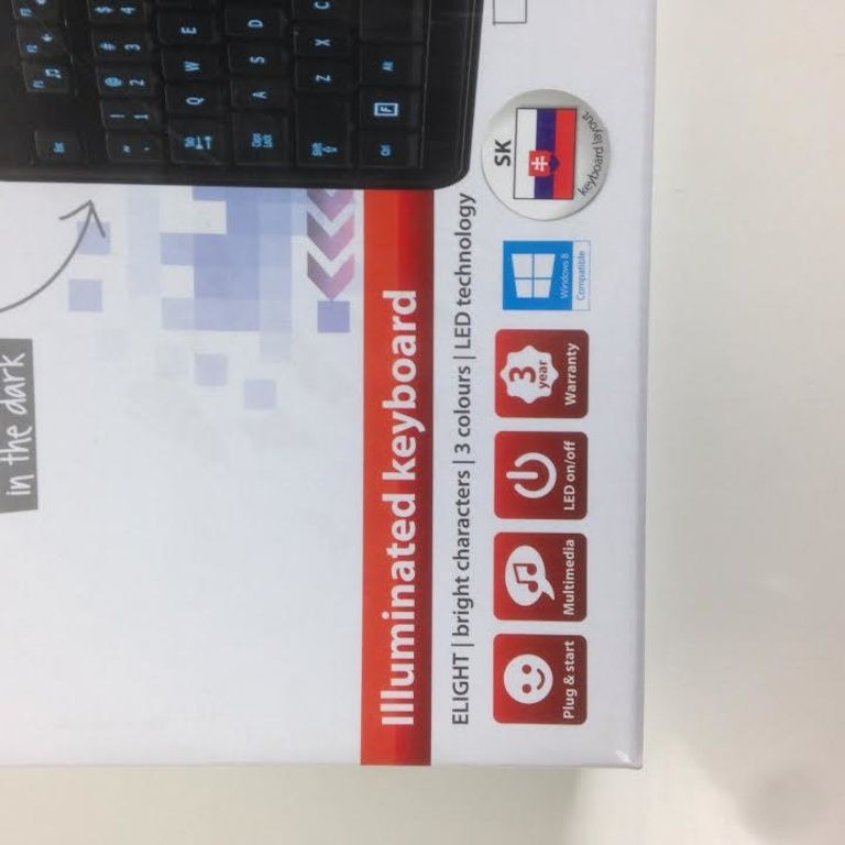 Méarchláir le geal, carachtair stiúir-soilsithe ar na heochracha, breá inléite sa dorchadas.