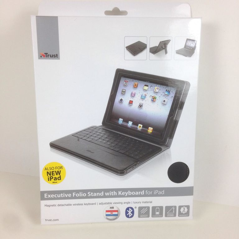 Stylish bhraitheann cás fóilió de leathar bréige le seasamh comhtháite agus méarchlár Bluetooth do do iPad & iPad2.