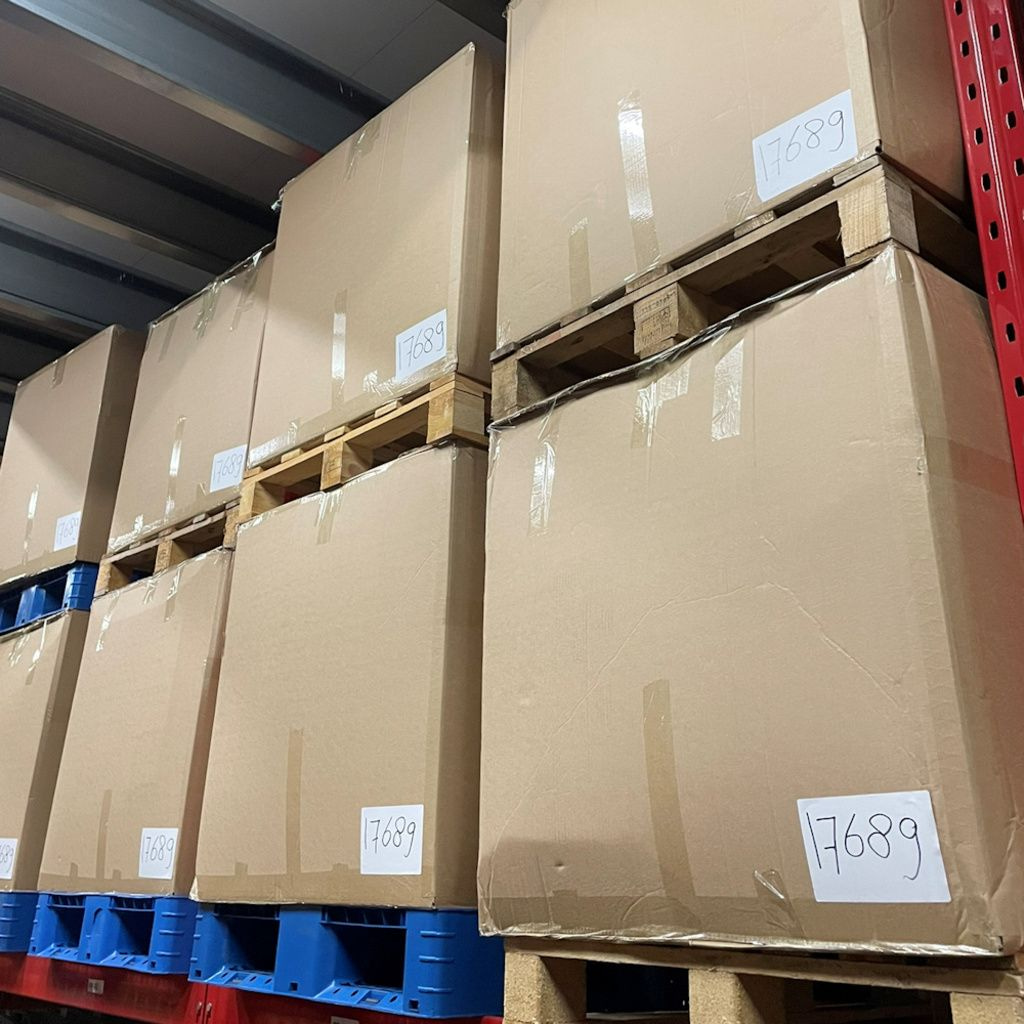 Tá na míreanna seo go léir measctha i mbosca pailléid de: 120 x 80 x 80 cm.