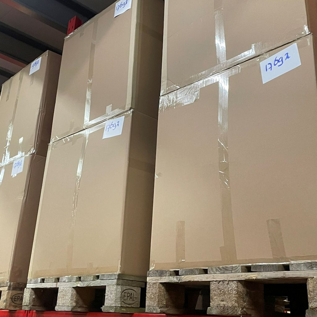 Tá na míreanna seo go léir measctha i mbosca pailléid de: 120 x 80 x 80 cm.