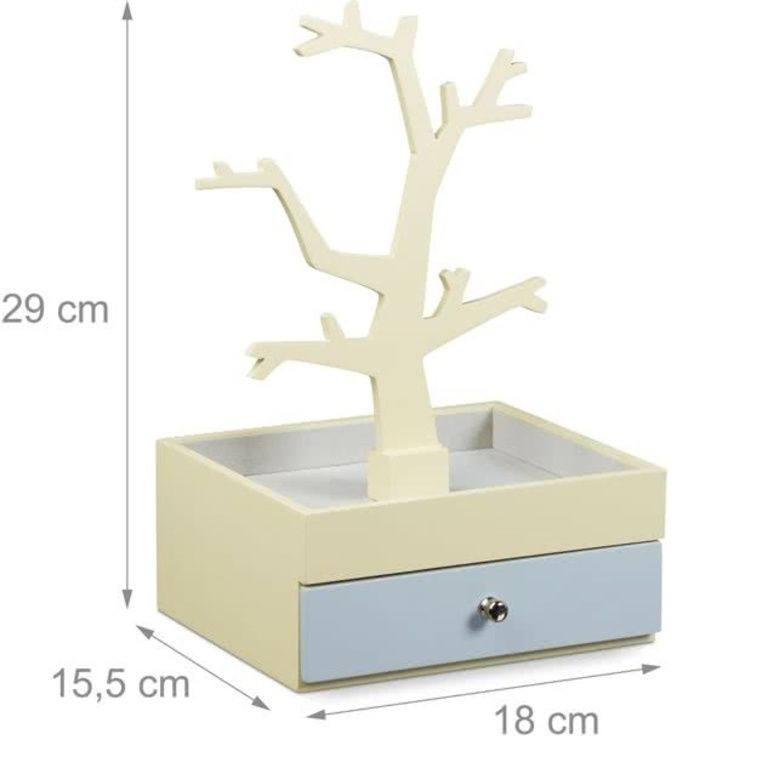 Beidh an bosca jewelry álainn cosc a chur ar do chuid necklaces tangle agus nach bhfuil seodra le fáil. An bosca seodra a fháil fáinní, bracelets, cluaise necklaces, áit bhuan. Tá an bosca jewelry drawer inbhainte le dhá urranna beag agus áit do fáinní. Tá aird a tharraingt ar leith an crann jewelry le cúig arm go bhfuil a chur ar bharr an bhosca jewelry. Is é an bosca seodra beag idirdhealú ag a dearadh bunaidh. Tá sé déanta go hiomlán as adhmad agus go dtabharfaidh an taobh istigh le veilbhit. Dá bhrí sin tú a chosaint jewelry ó scratches. De la chinntíonn gur féidir aon deannach a fháil chun an jewelry atá suite ann. Four lú pads neamh-skid go bhfuil an dromchla a chosaint ó scratching agus ní féidir leis sleamhnán as an bhosca.