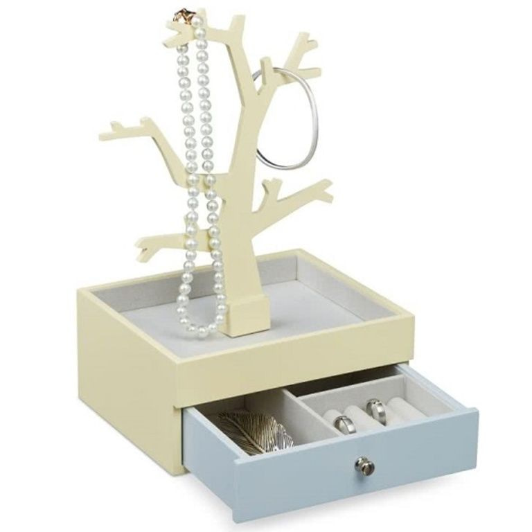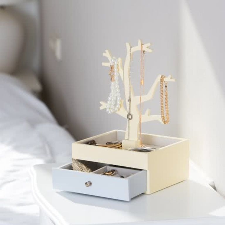 - Jewelry Box le drawer amháin agus jewels crann.